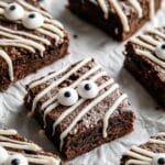 These Spooky Mummy Brownies are a fun and festive treat perfect for Halloween parties. Made from a box brownie mix and decorated with melted white chocolate to resemble mummy bandages and candy eyes for a creepy effect, they are easy to make and delightful for all ages.