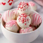 These Strawberry Cake Truffles combine moist strawberry cake mix with cream cheese and cream cheese chips, then dipped in rich vanilla and pink candy melts for a delightful bite-sized dessert. Perfect for parties or a sweet treat, these truffles offer a creamy, fruity flavor with a smooth chocolate coating and festive sprinkles.