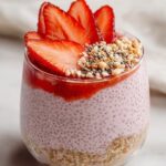 A delicious and healthy Strawberry Crumble Chia Pudding that combines creamy strawberry chia pudding with a crunchy almond date crumble topping. This vegan and gluten-free breakfast or snack is naturally sweetened with maple syrup and fresh strawberries, offering a refreshing, nutritious treat perfect for any time of day.