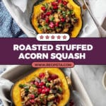 - Stuff Squash and Garnish: Spoon the filling evenly into the roasted acorn squash halves. Garnish with chopped fresh parsley and a few pomegranate arils. Serve warm as a comforting autumn meal.