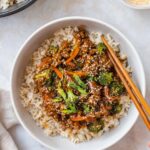 - Assemble Bowls and Serve: Divide cooked rice into bowls, top with the teriyaki turkey and vegetable mixture, garnish with diced green onions, and serve immediately.
