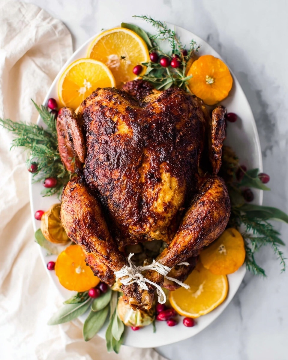 My family and I often pair this turkey with classic mashed potatoes, creamy green bean casserole, and buttery corn on the cob. Don’t forget some tangy cranberry sauce or an autumn apple chutney to balance the flavors. Trust me, it all comes together like a dream!