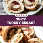 After your feast, wrap any leftover stuffed turkey breasts tightly in foil or place in an airtight container and refrigerate for up to 3 days. I’ve found slicing before storing helps cool it faster and makes reheating quicker the next day.