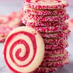 These delightful Valentine’s Day Swirl Cookies feature a beautiful marbled design, combining classic vanilla dough with vibrant colored dough. Rolled together and coated in festive holiday sprinkles, they offer a charming presentation and a sweet, buttery flavor perfect for celebrating special moments.