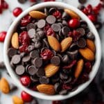- Combine Ingredients: In a large bowl, mix dried cranberries, dark chocolate chips, cherry-flavored candies, dark chocolate covered almonds, and red candy-coated chocolates until evenly combined. Thoroughly mixing ensures every bite includes a balanced variety of flavors and textures.
